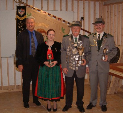 (Bild vlnr. Bürgermeister Günter Rudolf, 1.Ritter Tanja Rapp, Schützenkönig Klaus Munker, 2.Ritter Georg Hubert) Röttinger Schützen proklamierten ihre "Majestäten" Schützenmeister